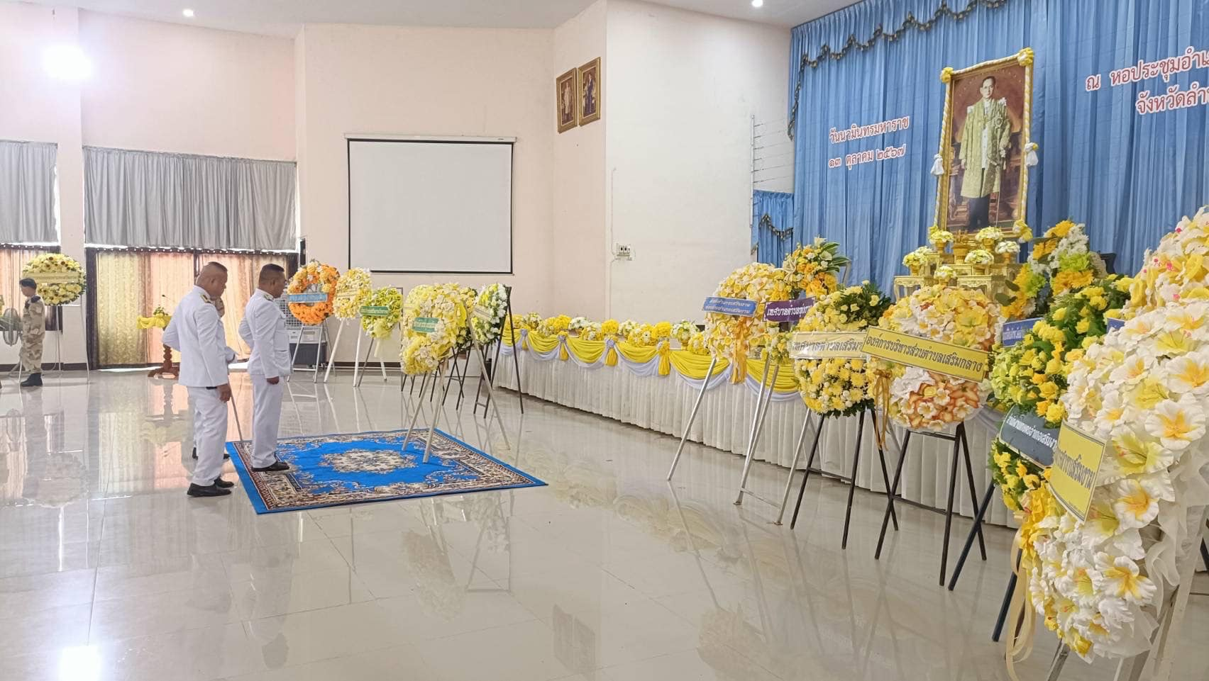 พิธีสวดพระพุทธมนต์ และทำบุญตักบาตรถวายพระราชกุศล เนื่องในวันนวมินทรมหาราช พิธีวางพวงมาลา เพื่อน้อมรำลึกในพระมหากรุณาธิคุณ ณ หอประชุมอำเภอเสริมงาม
